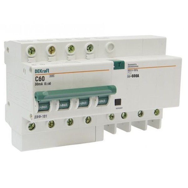 Автоматический выключатель DEKraft ДИФ-101 4п C 60А 30мА тип AC 4.5кА дифференциального тока
