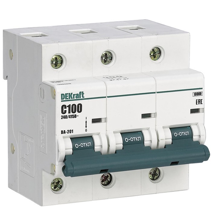 Автоматический выключатель DEKraft ВА-201 3п C 100А 10кА