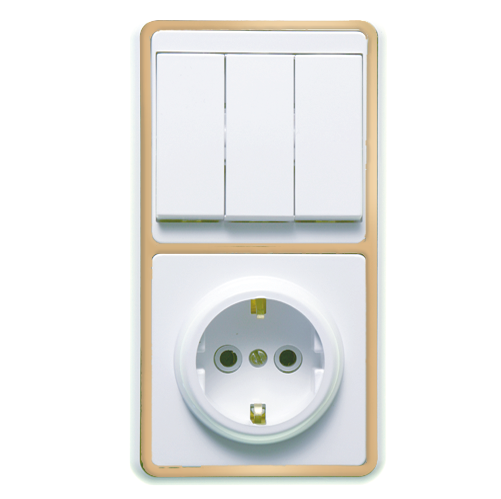 Блок розетки с выключателем Кунцево-Электро Бэлла БКВР-033 трехклавишный белый с золотом