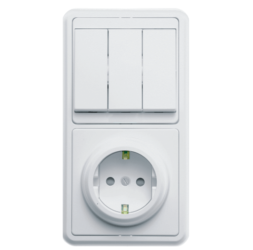 Блок розетки с выключателем Кунцево-Электро Бэлла БКВР-036 трехклавишный белый