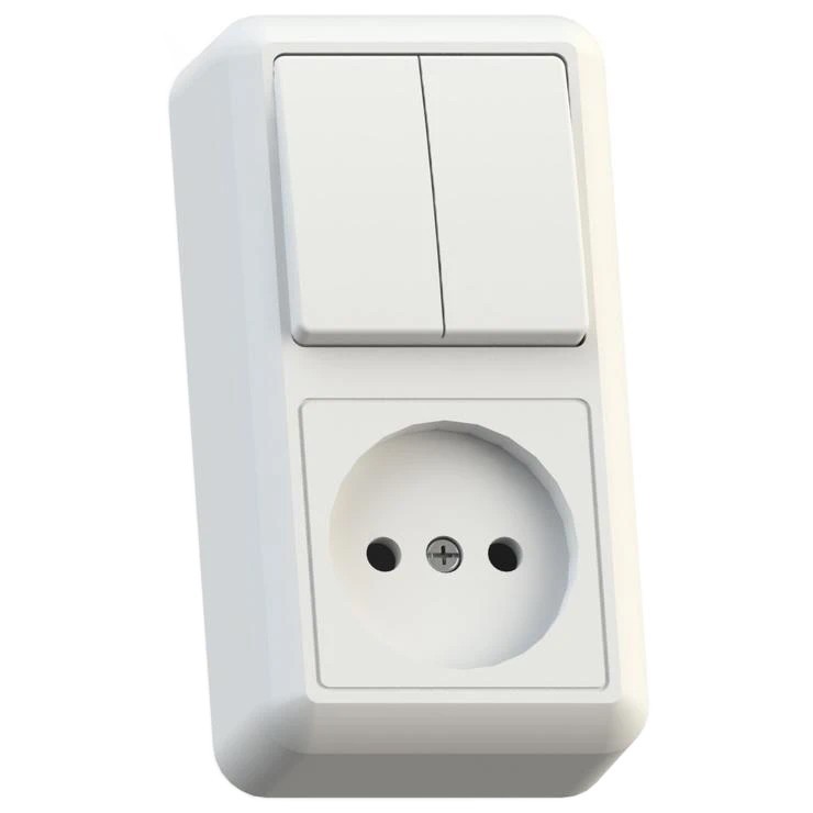 Блок розетки с выключателем Кунцево-Электро Оптима БКВР-404 двухклавишный белый