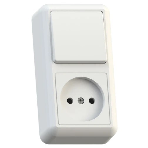 Блок розетки с выключателем Кунцево-Электро Оптима БКВР-427 одноклавишный белый