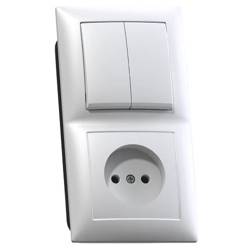 Блок розетки с выключателем Кунцево-Электро Селена БКВР-409 двухклавишный белый