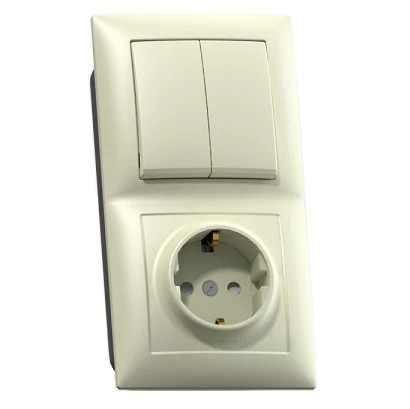 Блок розетки с выключателем Кунцево-Электро Селена БКВР-415 двухклавишный Слоновая кость
