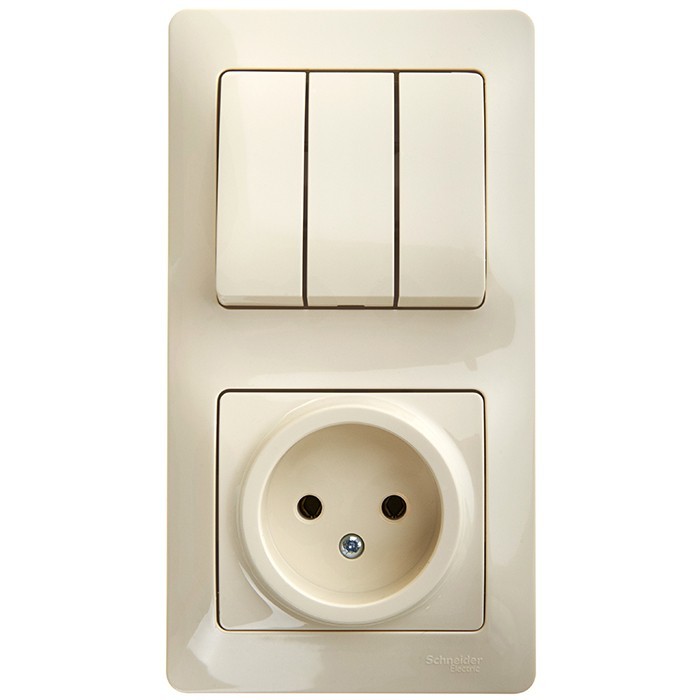 Блок розетки с выключателем Schneider Electric Glossa GSL000276 трехклавишный бежевый