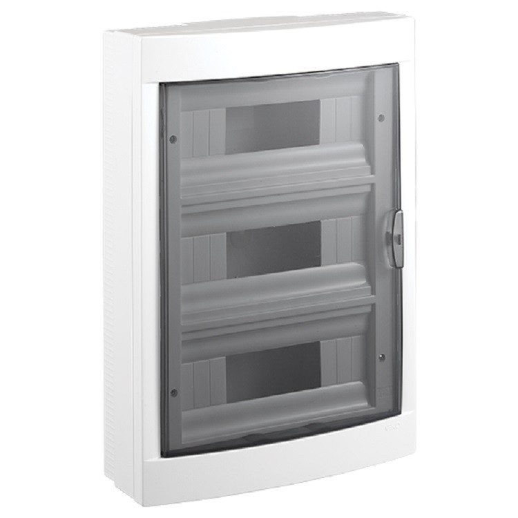 Бокс Viko 90912136 – это надежное и, одновременно, эстетичное изделие. Он отлично подходит для монтажа в различных общественных и жилых помещениях. Предназначен для открытой установки. Эстетичные формы изделия идеально впишутся в интерьер, а качественные материалы обеспечат безопасность эксплуатации. Щитовое оборудование, обеспечивающее контроль электрической сети и включающее в себя аппараты защиты, должно помещаться в короб подходящего размера. Бокс Viko 90912136 предназначен для размещения тридцати шести автоматов. Данная конструкция выполнена из высококачественного негорючего пластика, устойчивого к механическим повреждениям. Это повышает степень защиты электрических цепей, установленных аппаратов и УЗО от пыли и влаги. Прозрачная пластиковая дверца позволяет контролировать положение каждого автомата. Бокс комплектуется металлической DIN-рейкой и шиной заземления.