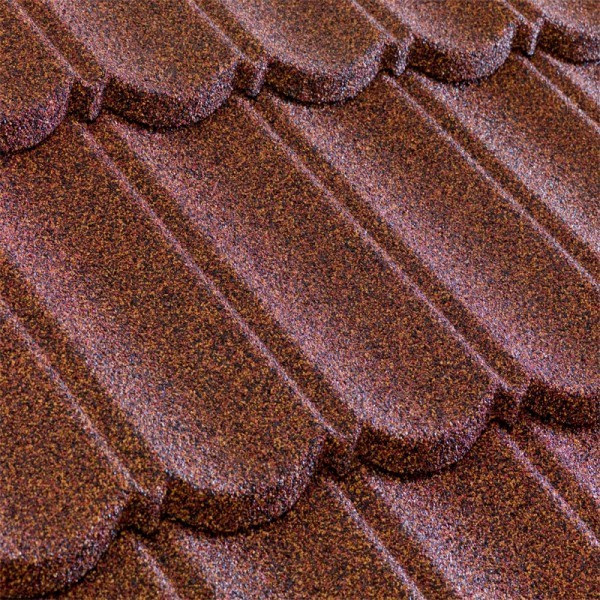 Черепица композитная Metrotile Metrobond Бургундия – современный элитный кровельный материал, отличающийся превосходным внешним видом и высокими эксплуатационными характеристиками. Metrobond - классический профиль, представляющий собой слегка вогнутые волны с ярко выраженным острым ребром. Коллекция MetroBond относится к числу наиболее востребованных профилей. Она отличается классическим дизайном, в точности повторяющим волновой рисунок обычной черепицы. Такая кровля превосходно сочетается и с традиционной архитектурой зданий, и с необычным, современным оформлением фасадов. Она надежно защитит Ваш дом и придаст ему неповторимый архитектурный стиль и индивидуальность. Если Вам близок по духу романтизм европейской архитектуры, создайте ее для себя с помощью коллекции композитной черепицы Metrobond. Черепица Metrotile Metrobond может использоваться на крыше с уклоном скатов от 12°. Кровельный материал образуют соединение, предотвращающее протечки. Соединения расположены под углом 90 градусов, что дает отличную защиту от ураганного ветра, дождя и снега. Средний срок службы, на протяжении которого кровля не требует покраски и гидроизолирующей обработки, составляет более пятьдесят лет. Черепица обладает высокой огнестойкостью и не воспламеняется даже при нагревании до рекордных температур - от 1000 градусов и выше, при этом она не выделят токсинов и других вредных веществ. Композитная черепица в своей структуре имеет восемь слоев. Основа – это качественный стальной лист, который во избежание коррозии имеет двустороннее покрытие алюмоцинковым сплавом. Надежную защиту кровельному материалу обеспечивает покрытие из крошки натурального камня. Акриловый клей является связующим звеном металла и каменного покрытия. Он обеспечивает сохранность каменной крошки на поверхности листа. Кровля из композитной черепицы быстро монтируется - может быть установлена непосредственно на старое кровельное покрытие без демонтажа, что позволяет отремонтировать крышу за минимальное время. Монтаж допускается вести при температуре от –10 °С до +35 °С, применение ремкомплекта возможно при температуре выше +5 °C. Начинать укладывать листы следует с нахлестом в направлении сверху вниз (нижний элемент заходит под верхний). При укладке листы из верхнего ряда, уже закрепленные вверху, приподнимаются, и под них заводится следующий лист. Затем верх нового ряда листов вместе с низом предыдущего ряда прибивается к обрешетке. Листы необходимо устанавливать смещая вертикальное соединение листов по отношению к следующему ряду, что позволит избежать единой вертикальной видимой линии, по всему скату. В местах нахлестов не должно сходиться более трех листов. Для коллекции черепицы Metrobond: боковое смещение между рядами S - целое число волн от 1 до 8, боковой нахлест между листами В - 60 мм. Преимущества композитной черепицы Metrotile Metrobond: Долговечная за счет стального основания с алюмоцинковым покрытием. Черепица не выцветает на солнце благодаря глубокой термальной окраске каменной посыпки. Бесшумная при дожде и граде, благодаря защитному слою из гранулята натурального камня. Гранулат натурального камня создает надежную звукоизоляцию, а слой прозрачного акрилата способствует безопасному самоочищению кровли от снега. Высокая пожаробезопасность. Запатентованный многослойный состав 
