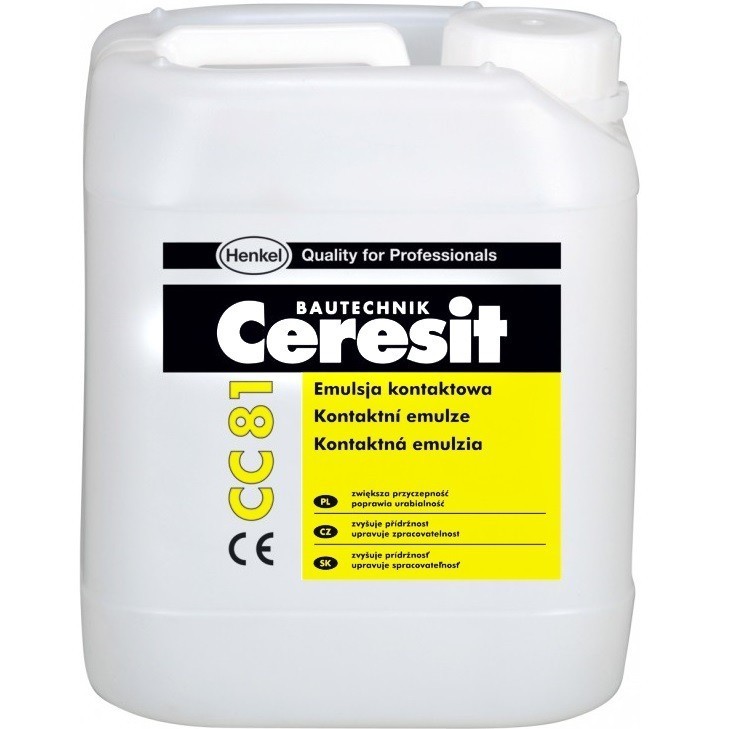 Ceresit CC 81 представляет собой модифицирующую добавку для бетона и цементных растворов, повышающую адгезию к плотным минеральным основаниям. Адгезионная добавка СС 81 предназначена для изготовления адгезионных слоев перед нанесением цементных стяжек и штукатурок, а также при выполнении бетонных работ, с целью повышения адгезии наносимых материалов к плотным минеральным основаниям внутри и снаружи зданий. Может применяться при изготовлении стяжек из традиционных цементно-песчаных растворов и напольных выравнивающих смесей, перед нанесением ремонтной смеси CN 83, для изготовления обрызгов и полуобрызгов при штукатурных работах. Пригодна для приготовления растворных смесей, наносимых механизированным способом. Введение добавки в бетонные и растворные смеси повышает их адгезию к бетону, технологичность, подвижность, стойкость к динамическим нагрузкам, снижает усадку и трещинообразование, увеличивает жизнеспособность и предотвращает пересыхание. Особенности добавки для сухих смесей Ceresit CC 81: жидкая; повышает адгезию к минеральным основаниям; предотвращает пересыхание растворных смесей; щелочестойкая; пригодна для внутренних и наружных работ; экологически безопасна.