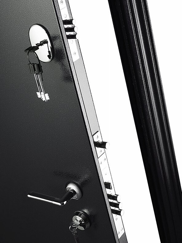 Стальные двери Меги производятся на автоматизированной линии. Собственные конструкторские разработки, сочетающие технологию и надежные отечественные материалы, позволяют создавать модели стальных дверей, которые по достоинству оценивают, как профессионалы рынка, так и потребители. Входная металлическая дверь Меги 573 (модель 573-0543) серии Купер Стандарт изготовлена из холоднокатаного стального листа. Внешняя сторона двери - порошковое покрытие цвета Серебро на черном, внутренняя сторона - царговая панель МДФ 16 мм цвета Беленый дуб со вставками из стекла Лакобель.Это отличная модель, сочетающая в себе высокую тепло- и звукоизоляцию, взломостойкость и дизайн. Утеплитель - жесткая заливка пенополиуретаном. Два контура специального уплотнителя: на полотне объемный трубчатый - сохраняет форму при длительной эксплуатации; на коробе магнитный - при закрытии двери, магнит герметично притягивает полотно к коробке. Надёжное крепление двери в проём обеспечивает толстая, глубокая дверная коробка (12 сантмеров), что отличает данную модель, от аналогичных. Конструктивные особенности двери Меги 573: Толщина металла - 1,5 мм. Толщина полотна - 82 мм. Толщина короба - 120 мм (не замкнутый). Ширина наличника - 80 мм. Внешняя панель - металл, объемный декор на полотне, цвет серебро на черном. Внутренняя панель - царговая панель МДФ 16 мм, со вставками из стекла Лакобель. Наполнение полотна - пенополиуретан. Контур уплотнения: магнитный уплотнитель на коробе, толстый трубчатый уплотнитель на полотне. Каркас укреплен системой горизонтальных ребер жесткости. Регулировка притвора при помощи эксцетрика. Два внутренних противовзломных штыря установленные с петлевой стороны. Замки: Основной - цилиндровый Border 3В4-3/85Г, броненакладка Apecs Protector Basic, ключ/ключ Дополнительный - сувальдный Border 3В 8-8Г/15, декоративная накладка с защитной шторкой Фурнитура: Ручка раздельная, Apecs Premier Pro форма 83 Глазок дверной Apecs