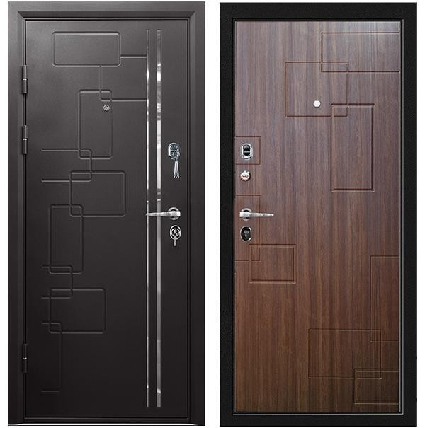 Дверь Промет С4 Камелот входная металлическая левая снаружи металл Черный муар внутри МДФ Орех темный 2066х880 мм