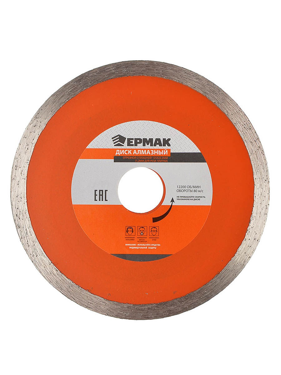 Диск Ермак алмазный отрезной сплошной 125х22,2 мм 1,2 мм для реза плитки