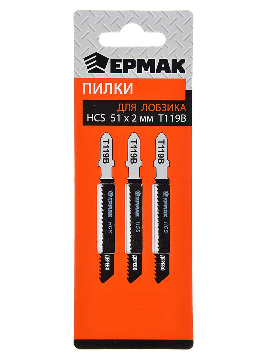 Пилки Ермак для электронного лобзика hcs eu 51х2 мм, t-119b мягкий деревопластик, дсп, 3 шт