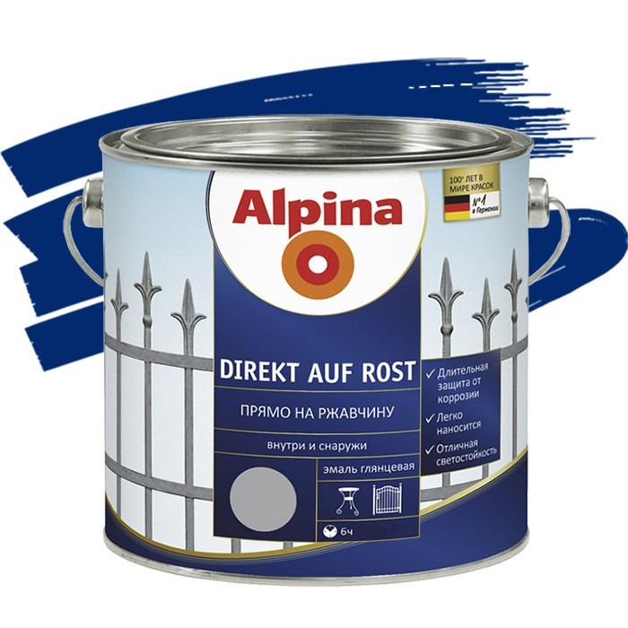 Эмаль Alpina Direkt auf Rost по ржавчине гладкая RAL 5010 синяя 0,75 л
