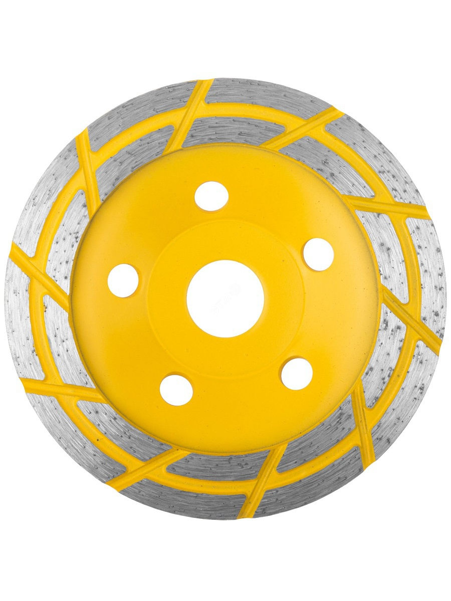 Два ряда сегментов. Для углошлифовальных машин. Посадочный диаметр 22,2 мм. Удобен для выравнивания кромки, шлифовки, полировки и работ, где необходима тонкая обработка. Работает по бетону, граниту, мрамору и другим материалам. Упаковка: картонная коробка.