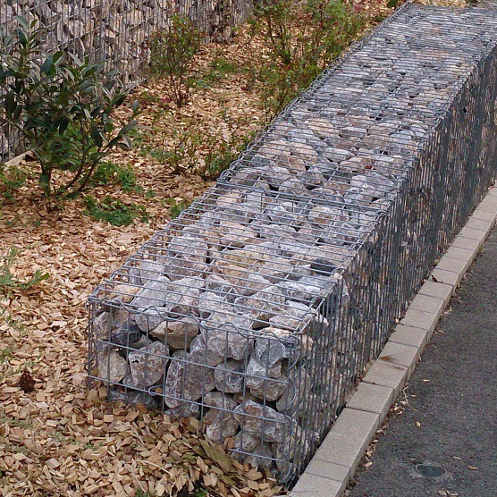Габион Протэкт представляет собой кубическую конструкцию из сварной оцинкованной сетки. Изделие поставляется в виде раздельных панелей и спиралей, позволяющих собрать габион на месте. Во время сборки верхнюю панель оставляют открытой для удобного заполнения короба подходящим материалом. В этом качестве может выступать как декоративный камень, так и битый кирпич, обернутый геотекстилем, грунт или другой насыпной материал, в зависимости от назначения конструкции. Использовать габионы можно по-разному. Габион Протэкт применяется для установки эффективных и недорогих подпорных стенок, как альтернатива железобетонным конструкциям. Служит элементом ограждения, используется для обустройства приподнятых клумб. Габион может применяться в качестве садовой мебели, тогда на поверхность устанавливаются сидения или столешница. Габион позволяет комбинировать материалы для заполнения: внешнюю часть выкладывают красивым камнем, а внутрь засыпают строительный мусор. Можно организовать на его поверхности клумбу, засыпав внутрь плодородную почву. В комплекте идет 6 панелей и 12 спиралей.