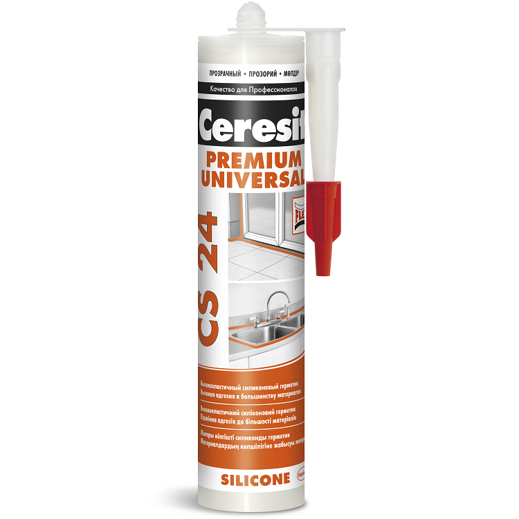 Универсальный силиконовый герметик CS 24 кислотного отверждения. Предназначен для использования без предварительной грунтовки внутри и снаружи зданий: для герметизации оконных и дверных блоков, стеклопакетов, швов стенных панелей и сборных ограждающих конструкций из бетона, металла и стекла, швов и примыканий в облицовочных покрытиях в ванных комнатах, душевых; выполнения деформационных швов в бассейнах, резервуарах, системах теплоизоляции фасадов, в т.ч. в соединениях с относительно высокой подвижностью; в санитарных и других конструкциях, где требуется стойкость к плесени. Особенности силиконового герметика Ceresit CS 24: высокая адгезия к стеклу, плитке, фарфору, анодированному алюминию, ПВХ и т.п.; высокая эластичность; противостоит ультрафиолетовому излучению и другим атмосферным воздействиям; не выцветает; обладает тепло- и водостойкими свойствами; высокая износостойкость; препятствует появлению грибка и плесени; может применять как при внутренних, так и наружных работах; экологически безопасен. Технические характеристики: Состав Жидкий силиконовый каучук с вулканизирующим агентом (ацетоксисиланом) Не отвержденный герметик: Цвет Белый Плотность 0,98 г/см3 Скорость экструзии 330 г/мин Время образования пленки 10 - 35 мин Скорость отверждения 2 мм / 24 ч Температура применения от +5 до +40°C Температура транспортировки и хранения от +5 до +30°C Отвержденный герметик: Твердость по Шору А: 20 Модуль упругости при 100% растяжении 0,3 МПа Относительное удлинение при разрыве 700% Предел прочности при растяжении (при толщине слоя 2 мм) 1,6 МПа Температура эксплуатации от –40 до + 120°С Таблица расчета расхода герметика CS 24 Universal в погонных метрах шва на единицу упаковки (280 мл) Ширина шва, мм Глубина шва, мм 6 8 10 12 15 20 25 4 11 8 7 5,5 4,5 3,5 2,8 5 9 7 5,5 4,5 3,5 2,8 2,2 6 7 5,5 4,5 3,5 3 2,2 1,8 8 5,5 4 3,5 2,8 2,2 1,7 1,4 10 4,5 3,5 2,8 2,2 1,8 1,4 1,1 12 3,5 2,8 2,2 1,8 1,5 1,1 0,9 При отверждении герметика выделяется уксусная кислота, по- этому его нельзя применять в контакте с такими корродиру- ющими материалами, как мрамор, металлы, отражающий слой зеркал, материалы на основе цементных и извест- ковых вяжущих (бетон, строительные растворы). Нельзя применять герметик в контакте с материалами на основе битума, натурального, хлоропренового и этиленпропиле- нового (EPDM) каучука, а также материалами, выделяю- щими масла, пластификаторы или растворители. Герметик не предназначен для герметизации аквариумов, швов, дли- тельное время находящихся в воде, а также подверженных абразивному износу и механическим нагрузкам