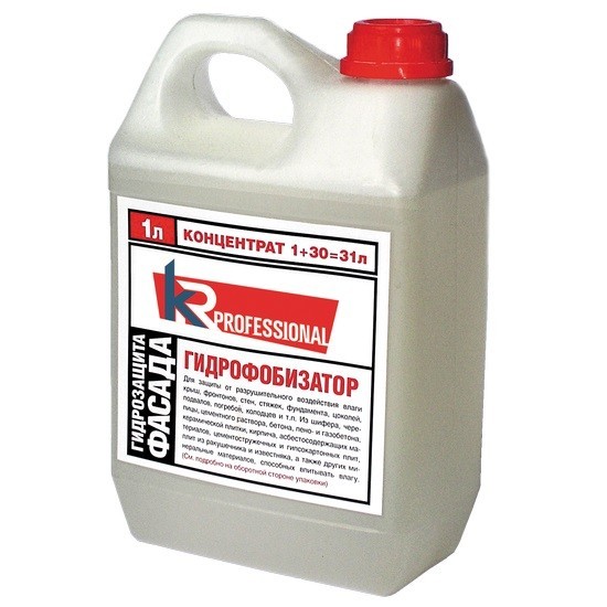 Гидрофобизатор KR Professional Байсиликон SK предназначен для обработки поверхности строительного материала с целью придания ему водоотталкивающих свойств. Отличается универсальностью применения и экологической безопасностью. Средство применяется для защиты от разрушительного воздействия влаги крыш, фронтонов, стен, стяжек, фундамента, цоколей, подвалов, погребов, колодцев и т.п. Подходит для оснований из шифера, черепицы, цементного раствора, бетона, пено- и газобетона, керамической плитки, кирпича, асбестосодержащих материалов, цементностружечных и гипсокартонных плит, плит из ракушечника и известняка, а также других минеральных материалов, способных впитывать влагу. Гидрофобизатор создает на изделии защитный слой, благодаря чему многократно повышается его водостойкость. Позволит уберечь поверхность от разрушительного воздействия влаги, от плесени и грибка, а также от агрессивной окружающей среды (кислотные дожди, вредные примеси в воздухе и т.д.), и тем самым, продлить срок службы. Для приготовления рабочего раствора необходимо разбавить концентрированный состав водой в пропорции 1:30.