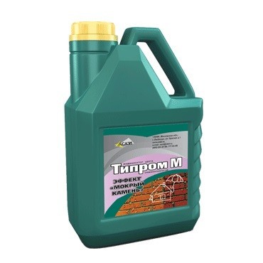 Гидрофобизатор Типром М представляет собой готовый к применению кремнийорганический состав на органическом растворителе. Средство рекомендуется для поверхностной обработки мелкопористых минеральных материалов (натурального камня, облицовочного кирпича, бетона) и дерева с целью модификации цвета поверхности (создание эффекта «мокрого камня»). Не рекомендован для обработки горизонтальных поверхностей, долгое время находящихся под воздействием воды (тротуарная плитка). Свойства гидрофобизатора Типром М: изменяет внешний вид мелкопористых минеральных материалов, усиливает насыщенность цвета поверхностного слоя, создает гидрофобный эффект; срок службы модифицированного слоя не менее 2 лет. Гидрофобизатор следует наносить равномерно на сухую и чистую поверхность при помощи кисти, валика, распылителя в несколько слоев до полного впитывания поверхности (с интервалом не более 10 минут) при температуре от -5°С до +30°С. Ввиду многообразия отделочных поверхностей, для оценки «мокрого эффекта» перед началом работ рекомендуется пробная обработка небольшого участка с последующим наблюдением эффекта в течение 3-5 дней. Практика показывает, что этого времени достаточно для окончательного формирования модифицирующего слоя. Во время работы применять защитные очки, резиновые перчатки. При попадании в глаза промыть водой. Беречь от детей и животных. Неадсорбирующие поверхности (окна, пластик, металл) и растения защищать от попадания.