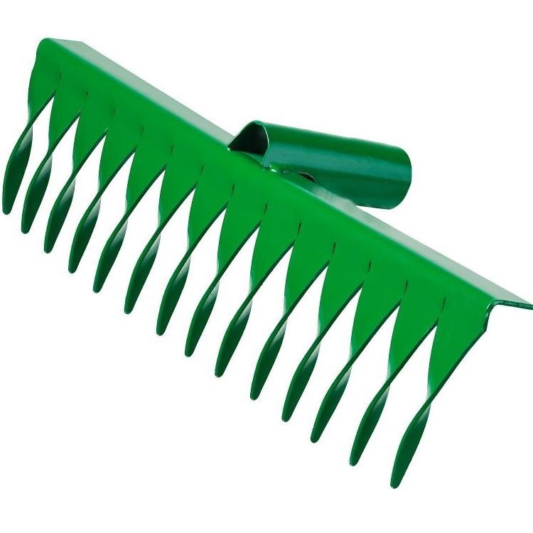Грабли витые Росток 39600-14 14 зубцов – прочные и удобные садовые грабли с рабочей частью из высококачественной стали с четырнадцатью витыми зубьями и креплением под деревянный черенок для уборки скошенной травы, опавших листьев, мусора, разравнивания грунта и других садовых работ. Грабли торговой марки Росток изготовлены из качественных материалов, устойчивы к деформации и имеют длительный срок службы. Особенности модели: Рабочая часть изготовлена из высококачественной стали, обладает высокой прочностью и устойчивостью к деформации. Порошковая окраска надежно защищает инструмент от коррозии. Широкие зубья удерживают собранный мусор в рабочей зоне грабель, позволяя убрать территорию за один проход. Крепление под деревянный черенок. Характеристики: Материал рабочей части: сталь Покрытие: порошковое Материал черенка: нет Количество зубьев, шт.: 14 Тип зубьев: витые Размер рабочей части, мм: 364x72