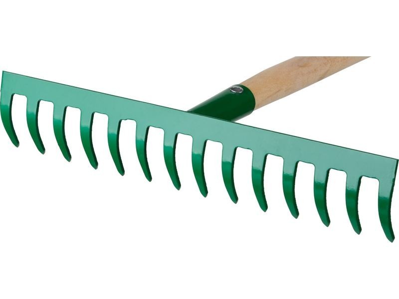 Грабли прямые Росток 421901-10 14 зубцов – прочные и удобные садовые грабли с рабочей частью из высококачественной стали с четырнадцатью прямыми зубьями и деревянным черенком для уборки скошенной травы, опавших листьев, мусора, разравнивания грунта и других садовых работ. Грабли торговой марки Росток изготовлены из качественных материалов, устойчивы к деформации и имеют длительный срок службы. Особенности модели: Рабочая часть изготовлена из высококачественной стали, обладает высокой прочностью и устойчивостью к деформации. Порошковая окраска надежно защищает инструмент от коррозии. Широкие зубья удерживают собранный мусор в рабочей зоне грабель, позволяя убрать территорию за один проход. Прочный деревянный черенок обеспечивает удобный хват и комфортную работу. Характеристики: Материал рабочей части: сталь Покрытие: порошковое Материал черенка: древесина Количество зубьев, шт.: 14 Тип зубьев: прямые Размер рабочей части, мм: 364х60