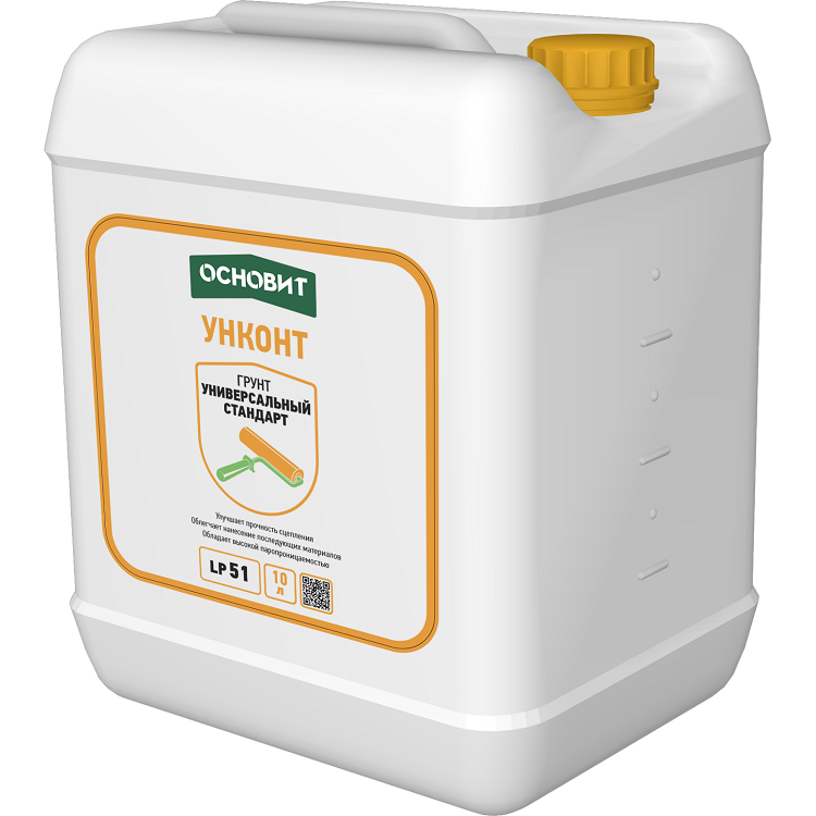 Грунтовка Основит Унконт Стандарт LP51 универсальная предназначен для предварительной обработки и обеспыливания минеральных оснований.Применяется для подготовки поверхности под последующее нанесение отделочных материалов: штукатурок, шпаклёвок, плиточных клеёв, лакокрасочных материалов. Для внутренних и наружных работ. Рекомендуемые основания: кирпич, бетон, цементные и гипсовые основания, ГКЛ и ГВЛ. Применение по сильновпитывающим основаниям возможно только при условии грунтования в 4 слоя. Состав: водная дисперсия стирол-акрилового сополимера, комплекс вспомогательных добавок. Свойства грунтовки Основит Унконт Стандарт LP51: Улучшает сцепление наносимого материала с основанием. Снижает впитывающую способность основания, облегчая равномерность высыхания наносимых материалов и, соответственно, предотвращая образование трещин. Высокая паропроницаемость позволяет основанию «дышать», препятствуя скапливанию влаги в конструкции, оказывающей отрицательное воздействие на конструкцию. Способствует увеличению прочности наносимых в дальнейшем материалов. Морозостойкость при хранении 5 циклов позволяет выдерживать многократное цикличное замораживание и оттаивание без изменения свойств. Технические характеристики: Расход 200-250 мл/м² Время высыхания не менее 1 часа Морозостойкость при хранении не менее 5 циклов Срок хранения 12 месяцев Температура эксплуатации -50˚С …+65 ˚С Температура окружающей среды и основания при нанесении +5˚С…+30˚С Вес упаковки 10 л Ограничения:Грунт не предназначен для обработки стальных и деревянных поверхностей, а также поверхностей, покрытых плиткой или масляной краской. Подготовка основания: Обрабатываемая поверхность должна быть прочной, сухой и чистой. Вещества, препятствующие сцеплению материала с поверхностью, такие как жировые и масляные загрязнения, пыль, непрочные и осыпающиеся элементы, старые лакокрасочные покрытия и др. следует удалить. Проведение работ: Перед использованием грунт необходимо перемешать. Грунтовка для внутренних работ Основит Унконт Стандарт LP51 наносится кистью, валиком или краскопультом на обрабатываемую поверхность. Нанесение последующих отделочных материалов возможно только после полного высыхания грунта (через 1 час). В процессе работы и в последующие два дня температура воздуха и поверхности основания должна быть не ниже +5ºС и не выше +30ºС, влажность воздуха в помещении не должна превышать 70%..