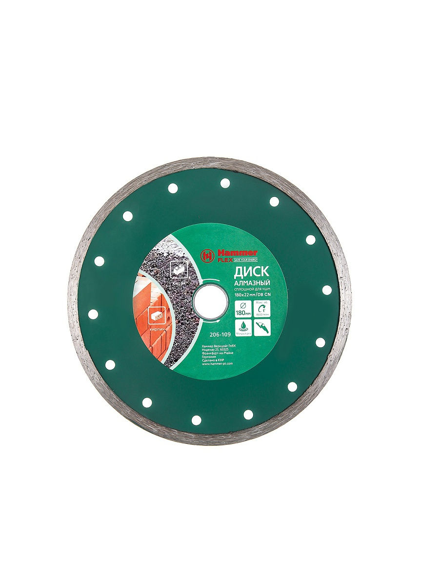 Диск HAMMER алмазный Flex 206-109 DB CN сплошной 180x22 мм