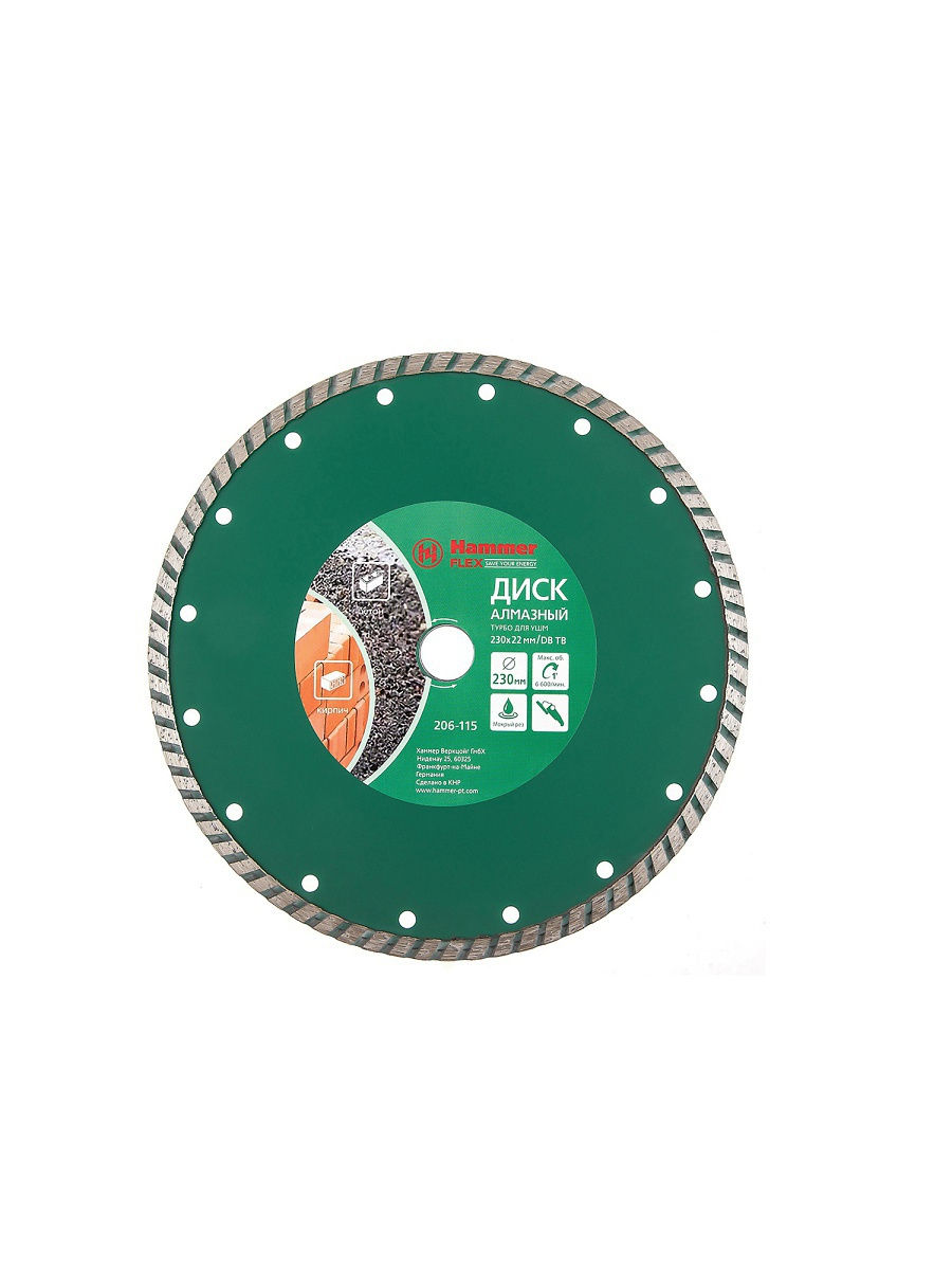 Диск HAMMER алмазный Flex 206-115 DB TB турбо 230x22 мм
