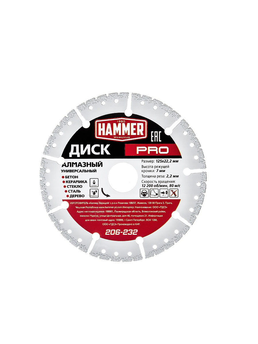 Диск HAMMER PRO алмазный 206-232 Универсальный Ф125х22 мм