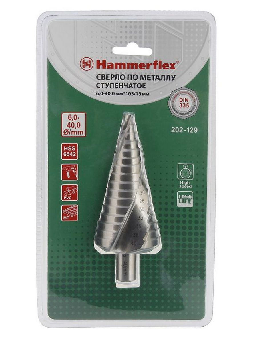 Сверло HAMMER Flex 202-129 DR MT ST 6,0-40,0 ммх105/13 мм металл, ступенчатое, DIN338, HSS 4241