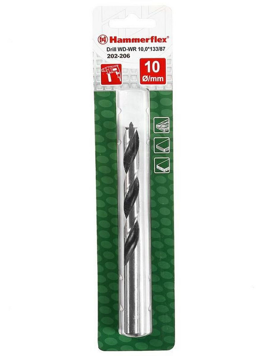 Сверло HAMMER Flex 202-206 DR WD WR 10,0 ммх133/87 мм дерево, цилиндрическое
