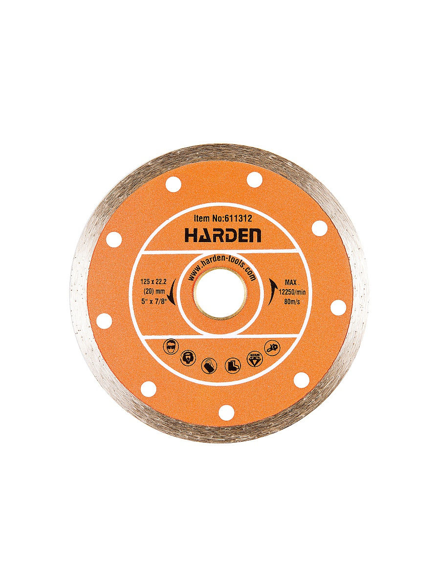 Диск HARDEN алмазный отрезной сплошной, 125х22,2 мм, влажная резка