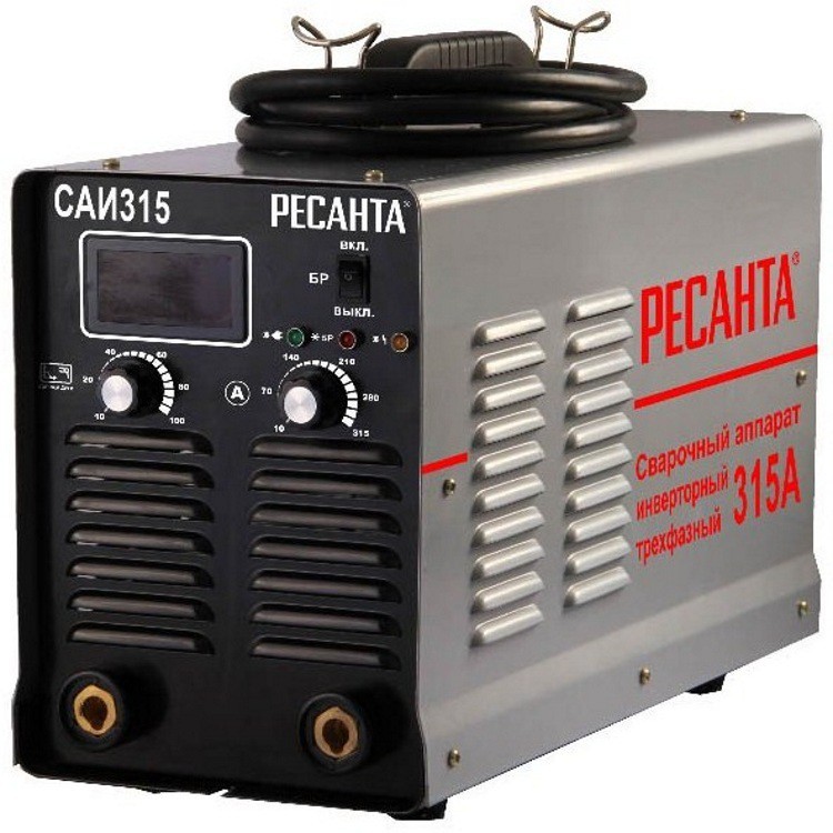 Инверторный трехфазный сварочный аппарат Ресанта САИ 315 3ф предназначен для ручной электродуговой сварки постоянным током, покрытым электродом. Диаметр проволоки может составлять не более 6 мм. Инвертор обладает системой светодиодных индикаторов, своевременно информирующих оператора о состоянии аппарата и позволяющем контролировать его работу. В наличии также селектор регулировки величины сварочного тока, который дает возможность выбрать нужный режим работы. В случае перегрева аппарат автоматически отключится. Аппарат оснащен функциями «ANTI STICK» (анти залипание), и «HOT START» (горячий старт). Наличествует удобная ручка для переноски, которая позволяет сварщику свободно перемещаться по рабочему пространству. Металлический корпус надежно защищает внутренние узлы от физических повреждений. Построен на IGBT транзисторах. Инвертор Ресанта САИ 315 3ф сваривает металлоконструкции и металлические изделия посредством использования штучных электродов. Будучи одними из наиболее надежных среди аналогов, предоставляют стабильную работу заданных параметров и легкость в эксплуатации, а также высокой ремонтопригодностью. Инвертор Ресанта САИ 315 3ф имеет специальные функции, наявность которых значительно упрощает рабочий процесс, и позволяют сваривать более эффективно. Особенности САИ 315 3ф: Металлический корпус Все датчики управления находятся на передней панели Функция «Hot Start» (горячий старт) Функция «Anti Stick» (анти залипание) Функция «Arc Force» (регулируемый форсаж дуги) Принудительная система вентиляции Широтно-импульсная модуляция высокочастотного напряжения