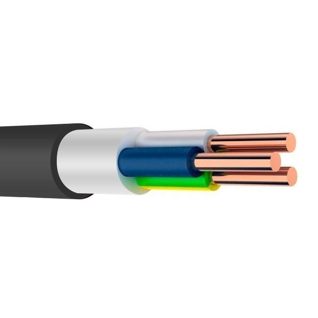 Кабель ВВГнг(А)-LS 3х2,5 Конкорд – силовой кабель, не распространяющий горение, с пониженным дымо- и газовыделением, с изоляцией и оболочкой из поливинилхлоридного пластиката. Кабель предназначен для передачи и распределения электроэнергии в стационарных установках на номинальное переменное напряжение 0,66 или 1 кВ частотой 50 Гц для прокладки с учетом объема горючей нагрузки во внутренних электроустановках, а также в зданиях, сооружениях и закрытых кабельных сооружениях, для электропроводок в жилых и в общественных зданиях. Кабель может быть проложен в строительных конструкциях зданий и сооружений, в сухих, влажных и сырых помещениях, внутри и снаружи кирпичных или бетонных стен, за исключением прямой заделки в сырой бетон. Сердечник кабеля представляет собой скрученные токопроводящие жилы, изоляция которых выполнена из поливинилхлоридного пластиката. Поверх скрученных изолированных токопроводящих жил наложен заполнитель междужильного пространства, придающий кабелю в сечении круглую форму. Заполнитель выполнен из полимерной композиции на полиолефиновой основе, не содержащей галогенов, с улучшенными свойствами по пожаробезопасности. Оболочка кабеля выполнена из поливинилхлоридной композиции пониженной пожароопасности черного цвета. Оболочка наложена поверх заполнения и плотно прилегает к нему, при этом обеспечивается свободное отделение друг от друга любых смежных элементов кабельного изделия без повреждения элементов. Токопроводящая жила — медная, круглой формы, соответствует классам 1 и 2 по ГОСТ 22483. Жила является однопроволочной и имеет сечение 2,5 мм2. Расцветка изоляции токопроводящих жил — согласно п.5.2.1.10 ГОСТ 31996. Особенности: Температура эксплуатации – от - 50°С до + 50°С. Температура прокладки и/или перемотки без предварительного подогрева – не ниже - 15°С. Допустимый радиус изгиба одножильных кабелей при прокладке должен быть не менее 10Dн, где Dн — наружный диаметр кабеля; Вид климатического исполнения – УХЛ. Категория размещения – 1, 5 по ГОСТ 15150. Класс пожарной опасности – П1б.8.2.2.2 по ГОСТ 31565. Длительно допустимая температура нагрева жил кабелей, допустимый нагрев жил в аварийном режиме, допустимые токи короткого замыкания – соответствуют требованиям ГОСТ 31996. Буква «А» в обозначении кабелей указывает категорию нераспространения горения при испытаниях по ГОСТ IEC 60332-3-22. Этому типу испытаний соответствует предел распространения горения ПРГП1б по ГОСТ 31565. Отличительной особенностью кабелей исполнения «нг(А)-LS» является не распространение горения по категории «А» при прокладке в пучках (ГОСТ IEC 60332-3-22) и нормированное газо- и дымовыделение.