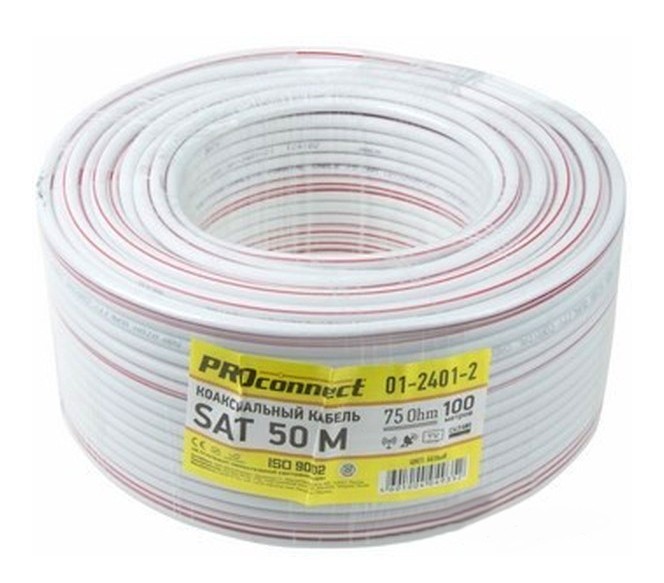 Кабель Proconnect коаксиальный SAT 50 M 75 Ом CCS/Al/Al 75% белый бухта 100 м