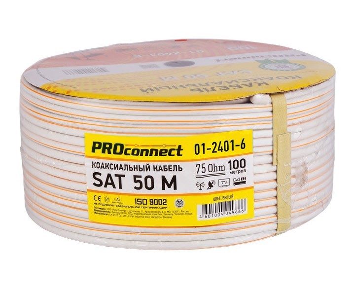 Кабель Proconnect коаксиальный SAT 50 M 75 Ом Cu/Al/Cu 64% белый бухта 100 м