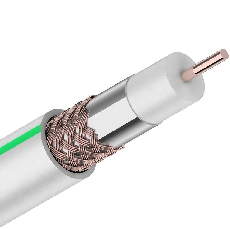 Экранированный. Изоляция - вспененный полиэтилен. Материал оболочки - ПВХ.. Марка кабеля - SAT |