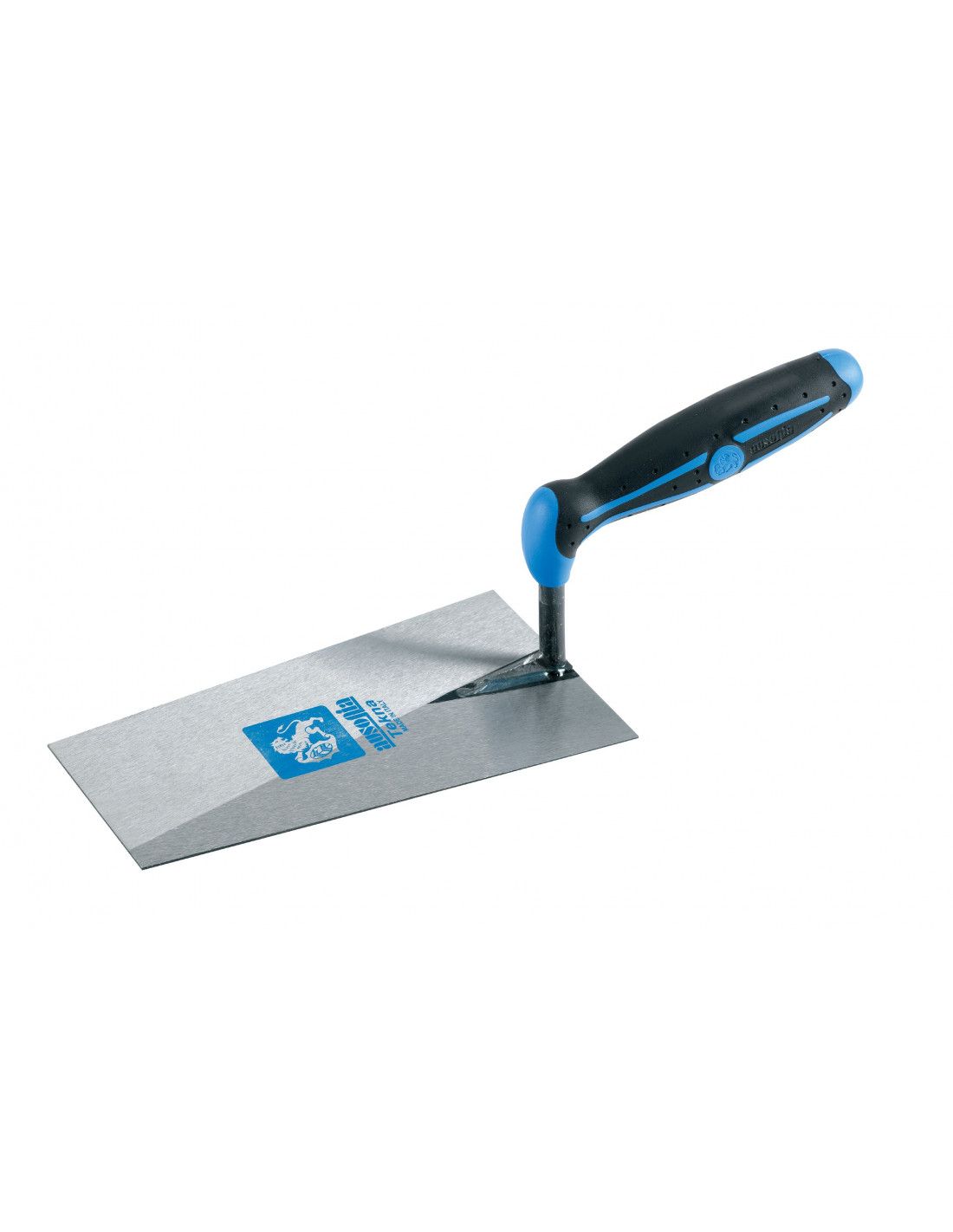 Кельма трапециевидная Ausonia – классическая разновидность инструмента каменщика. Трапециевидная форма рабочей площадки обеспечивает максимальную производительность и удобство при набрасывании строительного раствора на нижний слой кладки, выравнивании его, удаления излишков, выступающих из межконструкционных швов. Инструмент оснащен ударопрочной ручкой из полипропилена с противоскользящим покрытием. Полотно изготовлено из высококачественной прочной стали с защитой от появления ржавчины.