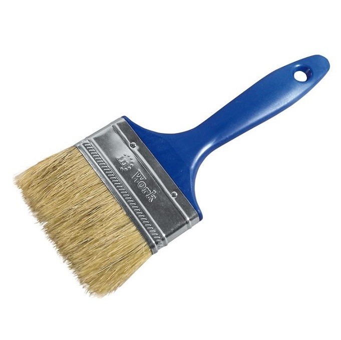 Малярная флейцевая кисть с натуральной щетиной USP Nybo 01158 является недорогим и качественным малярным инструментом, который подходит для работы с любыми лакокрасочными материалами. Основное назначение кисти – сглаживание свежей краски, то есть избавление от следов после применения маховой щетки. Также она часто используется и не по прямому назначению, а просто для нанесения краски. Помимо финального сглаживания применяют данное изделие и для тонкой отделки, когда нужно получить идеальное глянцевое покрытие. Ширина кисти составляет 100 мм и позволяет класть ровный тонкий красящий слой одним махом. Ею удобно пользоваться при финальной отделке полов, стен, деревянных ограждений, нанесения клея на обои и пр. Рабочая часть кисти изготовлена из натуральной щетины и отличается плотной набивкой. За счет плоской формы кисть дает очень ровный слой. Кроме того, ею легко и приятно работать. Краска распределяется по поверхности одним легким движением без лишних усилий. Плоская кисть не оставляет потеков, полосок и разводов. Кисть оснащена пластиковой рукояткой. На краю ручки расположено отверстие для подвешивания кисти, что позволяет избежать деформации щетины при хранении инструмента.
