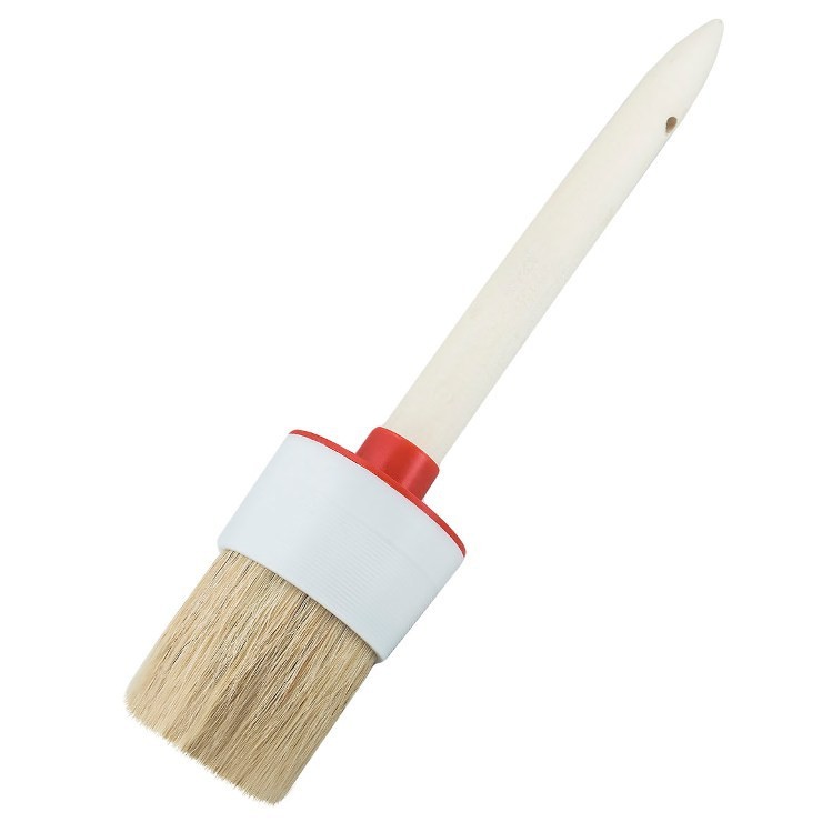 Кисть круглая Universe Standart № 10 применяется для окраски узких длинных поверхностей, в том числе оконных рам, дверей, различных П- и Г-образных профилей, плинтусов. Также прекрасно подходит для нанесения краски в труднодоступных местах, на стыках и углах. Используется для нанесения всех типов лакокрасочных материалов, а наиболее эффективно взаимодействует с лакокрасочными материалами, которые растворяются органическими растворителями. Рабочая часть кисти изготовлена из светлой натуральной щетины с расщепленными кончиками. Благодаря этому, а также наличию микроскопических чешуек по всей поверхности щетины, она обладает отличными краскообменными свойствами и хорошо удерживает лакокрасочный материал. Кисть наносит краску равномерно и аккуратно. Щетина закреплена в бандаже при помощи специального клеевого состава, который надежно удерживает ее и препятствует выпадению. Бандаж выполнен из прочного пластика, устойчивого к растворителям. Кисть оснащена длинной рукояткой, изготовленной из древесины. Такая рукоятка создает надежный захват при работе и не выскальзывает из руки. На краю ручки расположено отверстие для подвешивания кисти.