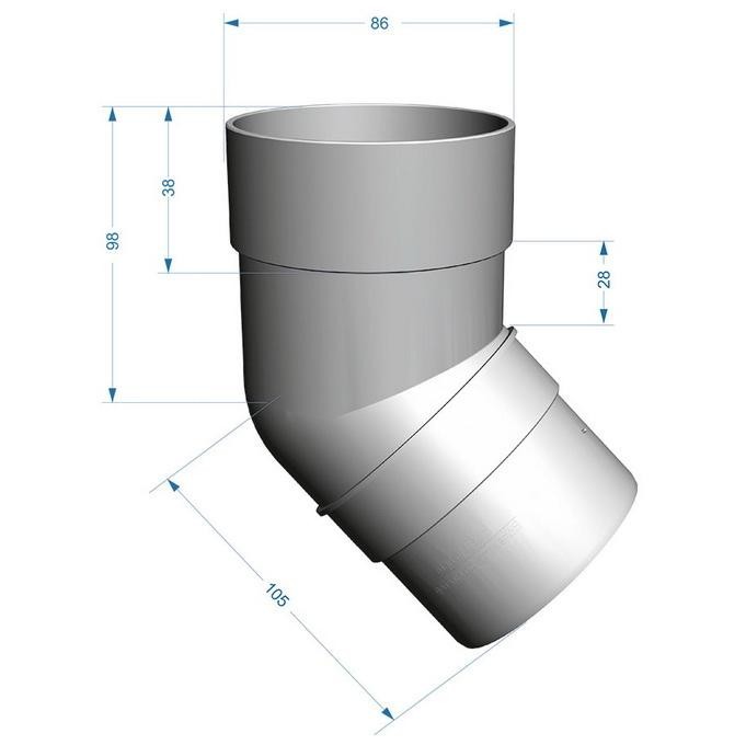 Водосточная система – обязательный элемент любого строения. Водостоки Docke, изготовленные в России из европейских материалов по немецкой технологии, оберегают крышу от нагрузок, защищают стены от избытка влаги, исключают подмыв фундамента. Герметичная конструкция обеспечивает бесперебойный слив накопившейся воды. Колено трубы Docke Premium D120/85 45 градусов - элемент водосточной системы, предназначено для обеспечения перехода от воронки к трубе, а также для обхода архитектурных элементов фасада. Классическая, проверенная временем водосточная система Docke Premium разработана немецкими инженерами специально для малоэтажного строительства. Именно она стала своеобразным эталоном рынка. Данную систему рекомендуется устанавливать на дома с площадью кровли от 150 до 250 м2. Особенности водостоков серии Premium: Диаметр желоба: 120 мм. Диаметр трубы: 85 мм. Толщина стенок: 1,8 мм. Пропускная способность желоба: 1,8 л/сек на п.м. Пропускная способность трубы: 6,4 л/сек. Система соединения элементов: на уплотнителях, без клея и герметика. Уплотнители: из силиконизированной резины, сохраняют свойства при любых температурах, не рассыхаются. Уникальные запатентованные ограничители монтажа (Патент на изобретение № 2439259). Уникальный универсальный хомут, позволяющий крепить как трубу, так и фитинги (Патент на изобретение № 2413895). Уникальное крепление желоба с регулируемым углом наклона. Желоб способен восстанавливать форму после механического воздействия. Преимущества водостоков Docke из ПВХ: Универсальность. Водосточные системы Docke предназначены для обеспечения водоотвода с кровель разных типов. Ваш дом всегда будет прекрасен! Простота монтажа водосточных систем Docke – одно из основных их преимуществ. В Döcke эта простота доведена до совершенства. Продуманная конструкция, внятные и доступные инструкции и обычные инструменты – ещё никогда монтаж водосточной системы не был таким простым. Пластиковые водостоки не подвержены коррозии, плесени и грибку. Высокая стойкость цвета, в том числе под действием прямых солнечных лучей. Конструкция почти не создает дополнительной нагрузки на фасад здания. Водостоки ПВХ бесшумны, трубы не гудят даже во время сильного ливня. Все изделия изготавливаются с применением современного оборудования и технических решений. Каждый экземпляр водосточных систем проходит строгую техническую экспертизу и краш-тесты на механическую прочность, морозоустойчивость, огнеупорность. Водосточные системы, помимо своей основной функции – отвода осадков с кровли, выполняют и декоративную функцию. Водосточные системы Docke производятся в цветах, которые подобраны в соответствии с законами цветовой гармонии и идеально сочетаются как с другими материалами Docke, так и с любыми традиционными строительными и отделочными материалами. Вы можете выбрать водосточную систему, гармонирующую с фасадом, или подчеркнуть контуры вашего дома контрастной водосточной системой. Ваш дом всегда будет прекрасен!