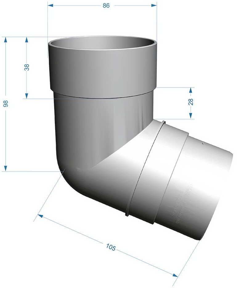 Колено трубы 72 градуса Docke Premium 120/85 Пломбир - элемент водосточной системы, предназначенный для обеспечения перехода от воронки к трубе. Применяется также для обхода архитектурных элементов фасада. Классическая, проверенная временем водосточная система Döcke Premium разработана немецкими инженерами специально для малоэтажного строительства. Именно она стала своеобразным эталоном рынка. Данную систему рекомендуется устанавливать на дома с площадью кровли от 150 до 250 м2. Особенности водостоков серии Premium: Диаметр желоба: 120 мм. Диаметр трубы: 85 мм. Толщина стенок: 1,8 мм. Пропускная способность желоба: 1,8 л/сек на п.м. Пропускная способность трубы: 6,4 л/сек. Система соединения элементов: на уплотнителях, без клея и герметика. Уплотнители: из силиконизированной резины, сохраняют свойства при любых температурах, не рассыхаются. Уникальные запатентованные ограничители монтажа (Патент на изобретение № 2439259). Уникальный универсальный хомут, позволяющий крепить как трубу, так и фитинги (Патент на изобретение № 2413895). Уникальное крепление желоба с регулируемым углом наклона. Желоб способен восстанавливать форму после механического воздействия. Преимущества водостоков Docke из ПВХ: Универсальность. Водосточные системы Docke предназначены для обеспечения водоотвода с кровель разных типов. Ваш дом всегда будет прекрасен! Простота монтажа водосточных систем Docke – одно из основных их преимуществ. В Döcke эта простота доведена до совершенства. Продуманная конструкция, внятные и доступные инструкции и обычные инструменты – ещё никогда монтаж водосточной системы не был таким простым. Пластиковые водостоки не подвержены коррозии, плесени и грибку. Высокая стойкость цвета, в том числе под действием прямых солнечных лучей. Конструкция почти не создает дополнительной нагрузки на фасад здания. Водостоки ПВХ бесшумны, трубы не гудят даже во время сильного ливня. Все изделия изготавливаются с применением современного оборудования и технических решений. Каждый экземпляр водосточных систем проходит строгую техническую экспертизу и краш-тесты на механическую прочность, морозоустойчивость, огнеупорность. Водосточные системы, помимо своей основной функции – отвода осадков с кровли, выполняют и декоративную функцию. Водосточные системы Docke производятся в цветах, которые подобраны в соответствии с законами цветовой гармонии и идеально сочетаются как с другими материалами Docke, так и с любыми традиционными строительными и отделочными материалами. Вы можете выбрать водосточную систему, гармонирующую с фасадом, или подчеркнуть контуры вашего дома контрастной водосточной системой. Ваш дом всегда будет прекрасен!