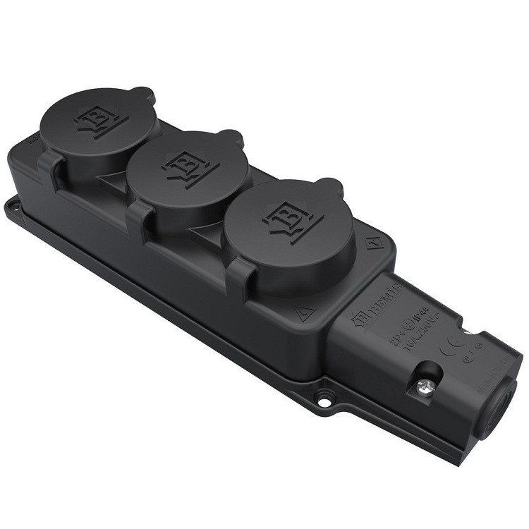 Колодка Bemis BK1-1402-3613 IP54 удлинителя 3 розетки с заземлением и крышками