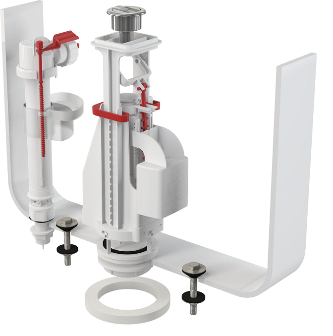 Выпускной комплект Alca Plast SA08AS 1/2 дюйма с двойной кнопкой предназначен для организации автоматического поступления воды в пластиковый бачок унитаза, а так же для механического смыва. Подходит для замены существующего механизма похожего назначения. Технические параметры: Диапазон регулировки по высоте: 315 – 450 мм Функциональные требования: Класс I Объем смыва зависит от размера и объема бачка Акустическая группа II: