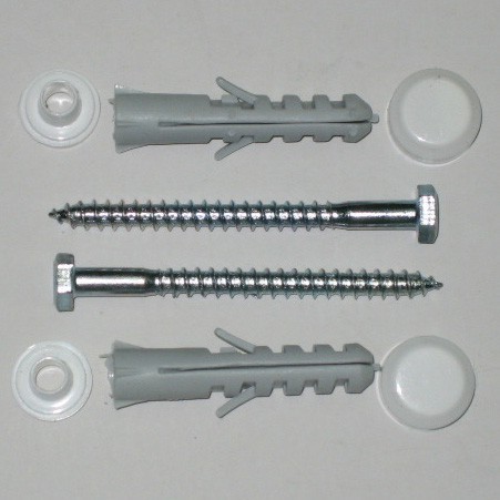 Набор креплений Псков предназначен для надежной установки унитазов. Состоит винтов 6х80, пластиковых прокладок, дюбелей и белых заглушек, каждый элемент поставляется в количестве двух штук. Винты изготовлены из высокопрочной стали, имеют шестигранные головки и качественную резьбу, выполненную на современном оборудовании. Пластиковые прокладки обеспечивают максимально плотную фиксацию и защищают санфаянс от повреждений в процессе установки. Высокопрочные дюбели изготовлены из качественного полипропилена. Крепление используют для монтажа унитазов к плите, бетону, листу, кладке из кирпича, а также строительным материалам полого типа. Преимущества комплекта креплений для унитаза Псков: максимальная надежная установка унитаза; в комплекте все необходимое; шестигранные винты из прочнейшей стали; резьба высокого качества; пластиковые прокладки защищают санфаянс от возможных повреждений; максимально плотная фиксация; дюбели из высококачественного полипропилена; подходит для многих видов основания; надежность; долговечность. Комплектация: винт 6х80 - 2 шт.; дюбель - 2 шт.; пластиковая прокладка - 2 шт.; заглушка белая - 2 шт.