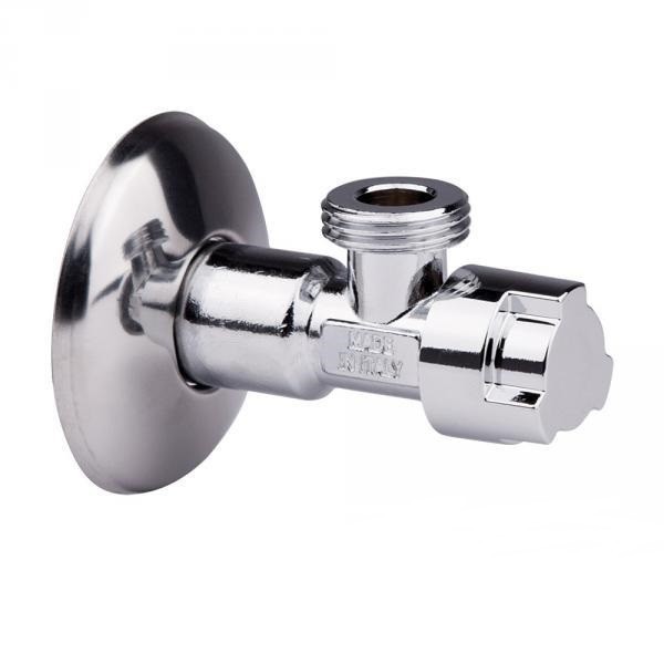 Кран угловой ICMA 519/90519AС07 1/2" с кран-буксой. Плоское подключение – 3/8". Подключается к гибкой подводке для мойки, умывальника, унитаза. Идет в комплекте с розеткой из хромированной стали. Кран угловой ICMA 519/90519AС07 выполнен из высококачественного материала. Корпус крана изготовлен из высококачественной горячештампованной латуни, наружное покрытие – хромирование. Максимальная температура использования – 90 °С. Технические характеристики: Корпус – латунь хромированная CW617N – UNI EN 12165. Шток – латунь CW614N – UNI EN 12164. Патрубок – латунь CW614N – UNI EN 12164. Гайка – латунь CW614N – UNI EN 12164. Прокладки EPDM. Розетка – хромированная сталь. Применение – система водоснабжения. Максимальное рабочее давление – 10 Bar.