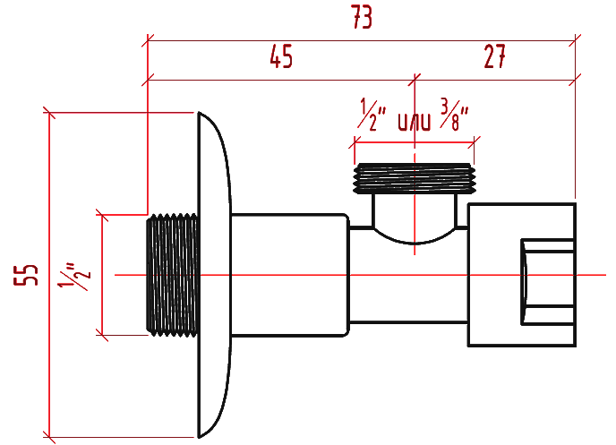 Кран ICMA 519/90519AС07 угловой 1/2х3/8 дюйма