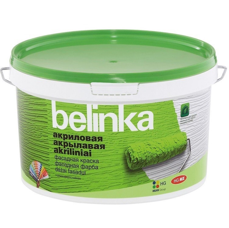 Краска фасадная Belinka В3 - атмосферостойкая акриловая фасадная краска на основе акриловой дисперсии. Предназначена для защиты и декоративного оформления фасадов и любых других внешних минеральных поверхностей. Подходит также для ремонтной окраски старых дисперсионных покрытий. Для наружных работ. Подходит для нанесения на полностью просохшие минеральные поверхности (бетон, штукатурка, кирпич и т. п.), каменную кладку. Рекомендуется для окраски фасадов жилых и общественных зданий в любых климатических зонах. Полупрозрачный состав, колеруется в насыщенные тона. Без колеровки не используется! Состав: акрилатный сополимер, пигмент, наполнители, специальные добавки и вода. Преимущества краски фасадной: отличается высокой гидрофобностью и атмосферностью; отличается хорошей адгезией к большинству оснований, хорошей устойчивостью к климатическим воздействиям и вредной промышленной среде; устойчива к мокрому истиранию; легко наносится; безопасна для здоровья и безвредна для окружающей среды. Применение: Подготовленную, очищенную и просохшую поверхность обработать универсальной акриловой грунтовкой Belinka. Поверхности стен, зараженные плесенью или грибком, еще перед нанесением грунтовки, следует обработать средством для удаления плесени Belinka. После высыхания отмершие грибки и плесень удаляются механическим способом. Краску перед нанесением необходимо хорошо перемешать. При необходимости разбавить водой на 5-10%. Краска наносится кистью, меховым валиком с длинным ворсом или методом распыления на сухую поверхность в 2 или 3 слоя. Во время нанесения и высыхания температура краски, основания и воздуха должна быть не ниже +5 °C, относительная влажность воздуха не должна превышать 80%. Краску не следует наносить во время дождя, тумана или сильного ветра. В солнечную погоду фасад должен быть защищен от прямых солнечных лучей для предотвращения неравномерной сушки, так как это влияет на качество покрытия. Внимание! Не допускать замерзания!