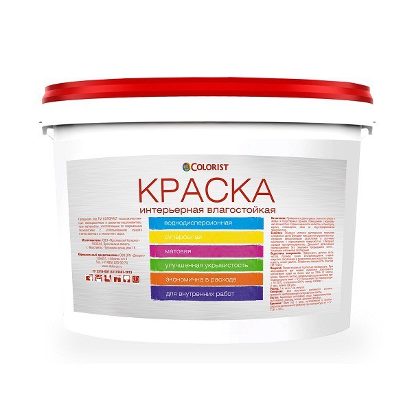 Краска Colorist воднодисперсионная акриловая, интерьерная, влагостойкая, супербелая 14 кг