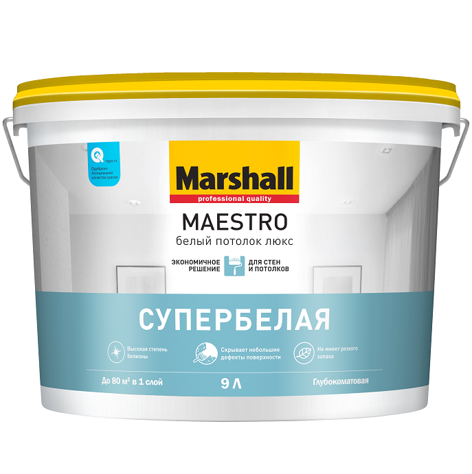 Краска Marshall Maestro Белый потолок Люкс для потолка глубокоматовая белая 9 л