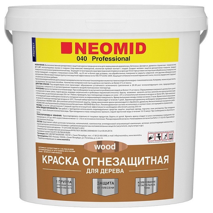 Краска Neomid Professional WO40 огнезащитная для дерева 25 кг